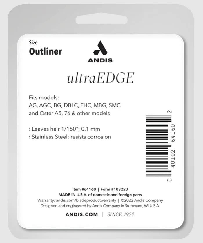 For barbers and stylists who demand ultimate precision, the Andis UltraEdge Size 1/150 Outlining Blade delivers an ultra-close, clean cut ideal for crisp lines, sharp edges, and detailed outlining. With a cutting length of just 1/150” (0.1 mm), this blade is perfect for dry shaving, skin-tight fades, and tight detailing around the ears, neckline, and beard.