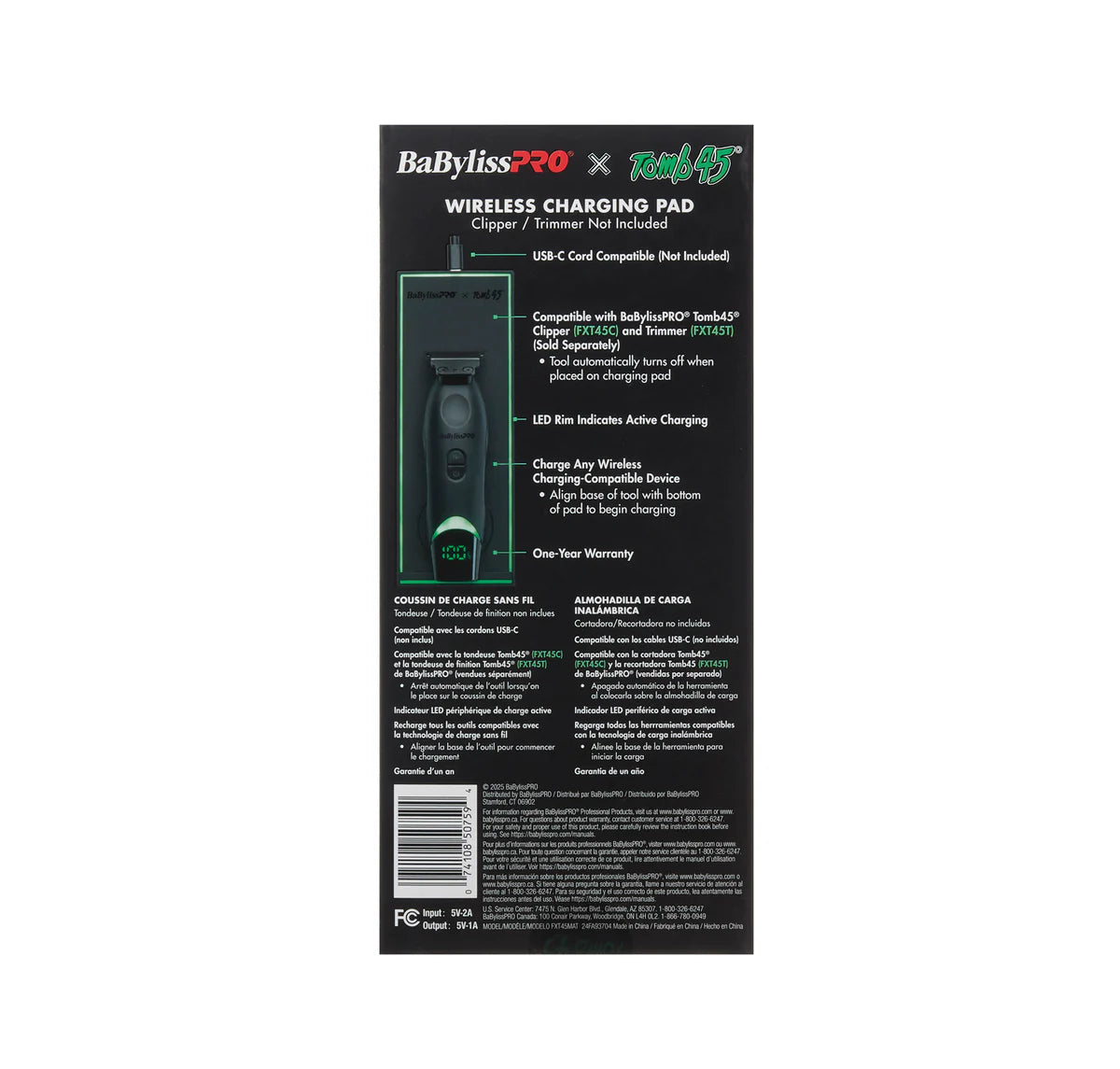 The BaBylissPRO x Tomb45 Wireless Charging Pad is designed for barbers who demand convenience and efficiency. Keep your compatible clippers, trimmers, and accessories charged and ready—no cords, no clutter.