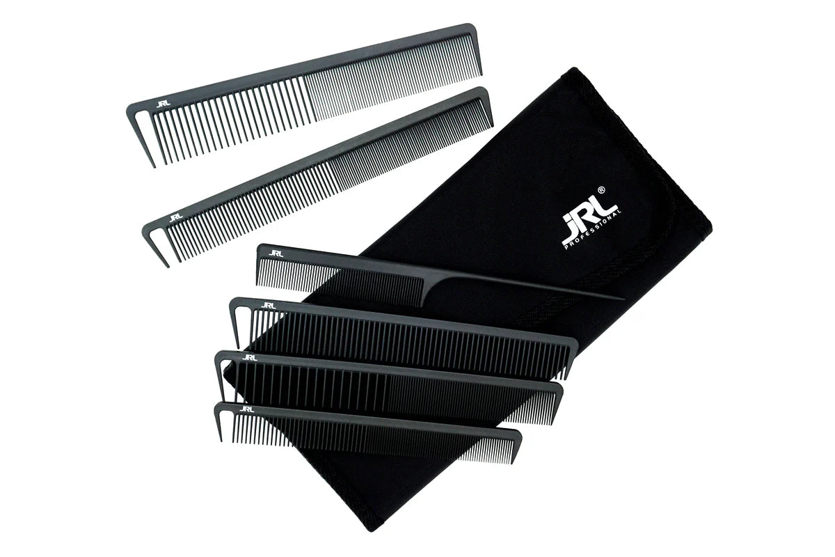 The JRL 6-Piece Carbon Comb Set is crafted for barbers and stylists who demand durability, control, and versatility—all packed in a sleek protective case.